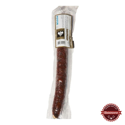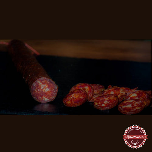 Halal Beef Chorizo Sliced Our Halal Spanish Beef Chorizo is known especially for its deep smoky flavour. We provide an unique, authentic, homemade spicy Chorizo characteristic of true Spanish flavour. We think of it as a ‘smoke and fire’ Chorizo. A winner recipe to satisfy those who like deep warm flavours and an extra kick of spices (Hot Smoked Paprika de la Vera). 93% meat content!