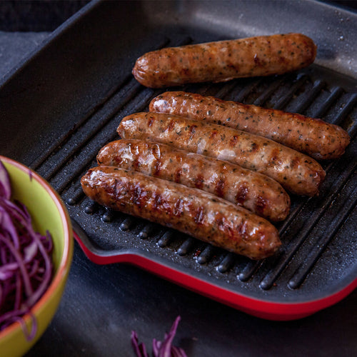 We recommend cooking the halal sausages on a skillet or pan. No need for greasing the pan. Remove all packaging before cooking. Fry for 12 -15 mins. The sausages can be grilled in the oven also for 15-20 mins. (all timings depend on appliance) Check meat is piping hot and juices run clear before serving. Try the sausage with our halal beef bacon for a great full english halal breakfast.